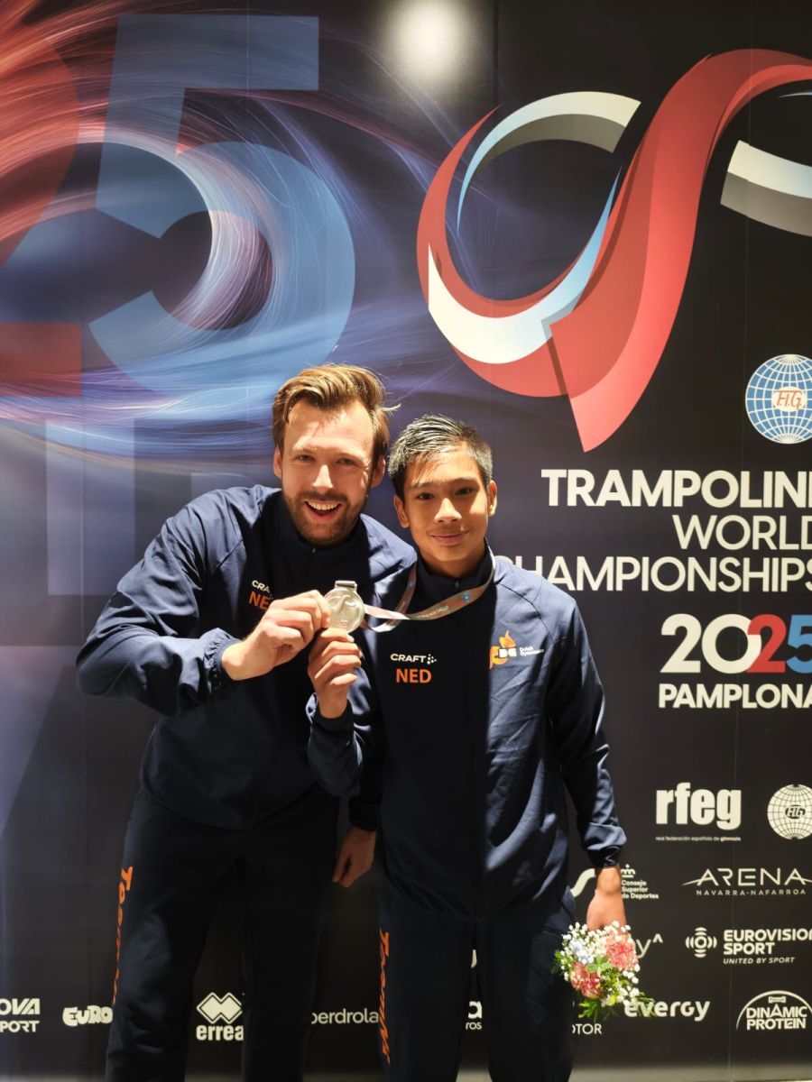 PAMPLONA – Kwin Oldewarris heeft in Pamplona geschiedenis geschreven met een WK-medaille op de Dubbel Mini Trampoline (DMT) — de allereerste ooit voor Nederland.